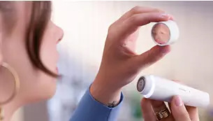 32 керамічні диски з гіпоалергенного матеріалу для комфортної обробки. Вони легко ковзають із меншим тертям і кращим контактом зі шкірою*. 91% жінок підтвердили, що шкіра почувається чудово під час епіляції**.