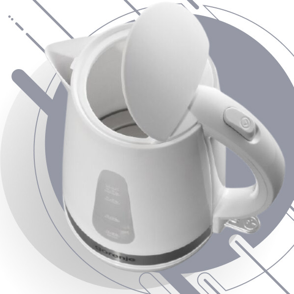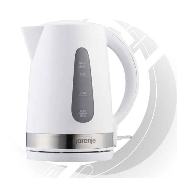 Безпечне відкривання кришки - обов'язкова вимога до сучасних електрочайників, якій відповідає Gorenje K17WE. Не стикайтеся з окропом або гарячою парою, навіть якщо необхідно відкрити чайник, який щойно закипів, натискайте на кнопку і кришка відкинеться самостійно. Для контролю кількості води передбачена прозора шкала, орієнтуючись на поділки якої, ви можете наливати потрібну кількість води і не витрачати зайву електроенергію.
