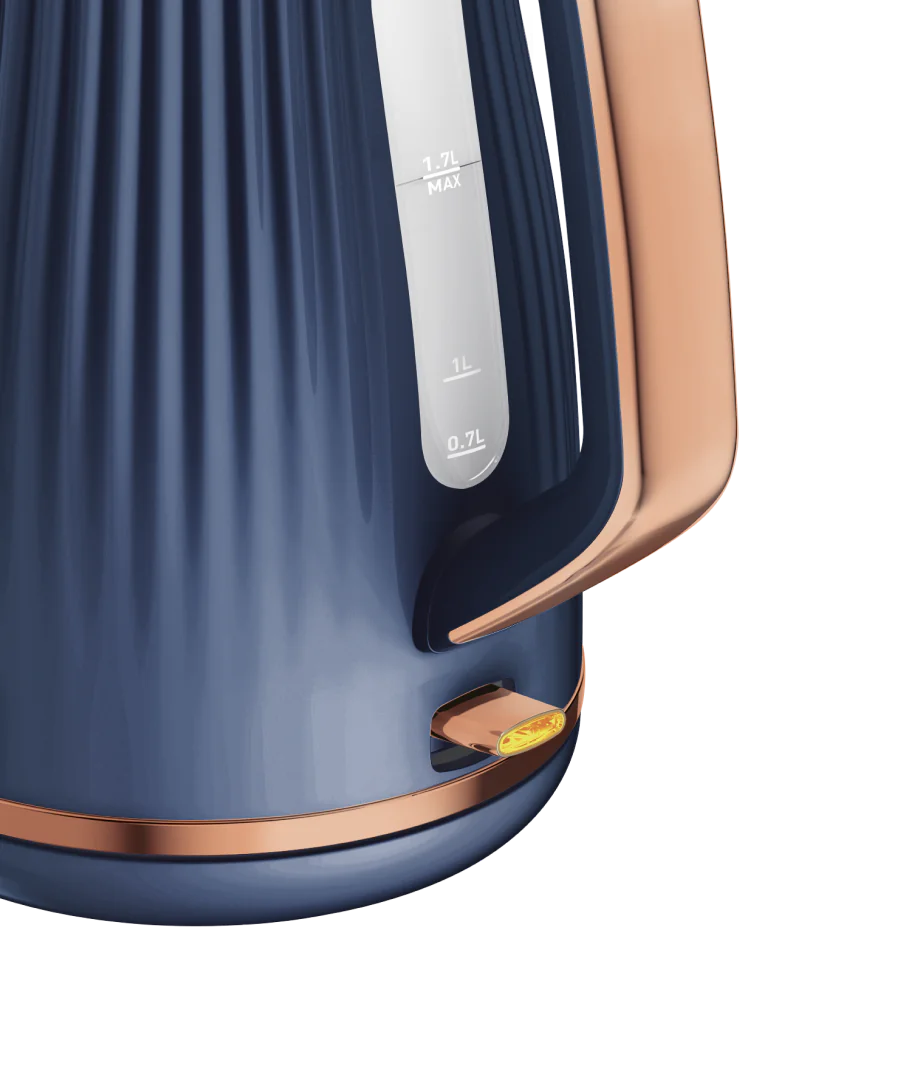 Високопродуктивний електрочайник з дизайном у стилі англійської кераміки та хромованими деталями. Швидко нагріває великий об’єм води. Має знімну кришку, фільтр від накипу та автоматичне вимкнення після закипання.